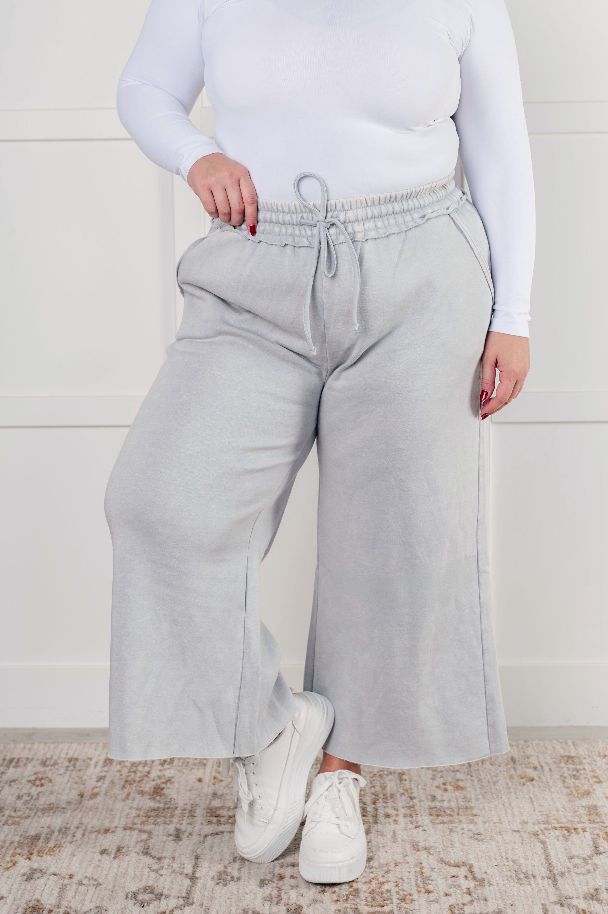 Zenana In or Out Wide Leg Cropped Pants in Light Grey